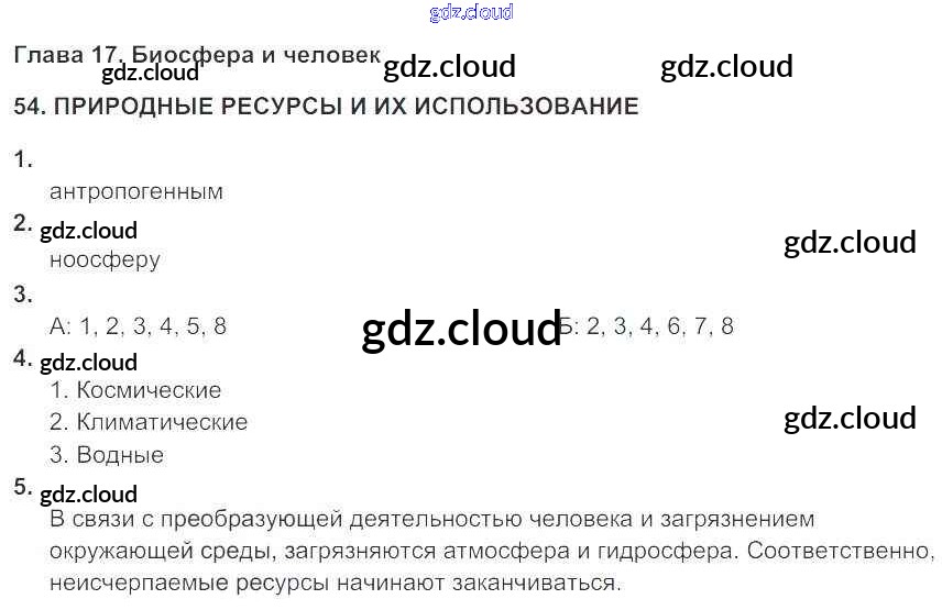 Ответы к Главе 17. Биосфера и человек по Биологии 9 класс Рабочая тетрадь Цибулевский Вертикаль Дрофа
