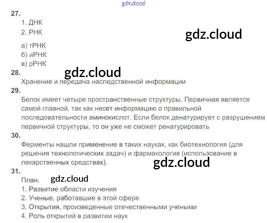 Ответы к Главе 2. Химическая организация клетки по Биологии 9 класс Рабочая тетрадь Цибулевский Вертикаль Дрофа