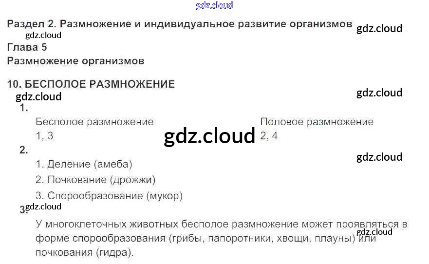 Ответы к Главе 5. Размножение организмов по Биологии 9 класс Рабочая тетрадь Цибулевский Вертикаль Дрофа