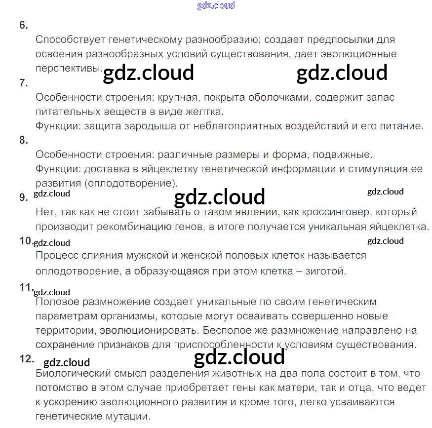 Ответы к Главе 5. Размножение организмов по Биологии 9 класс Рабочая тетрадь Цибулевский Вертикаль Дрофа