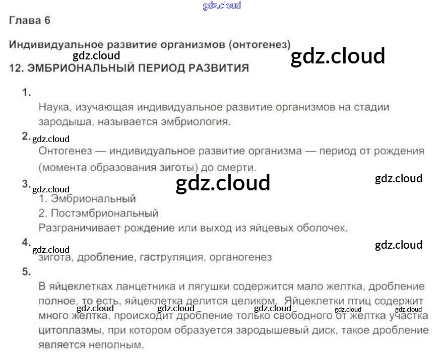 Ответы к Главе 6. Индивидуальное развитие организмов (онтогенез) по Биологии 9 класс Рабочая тетрадь Цибулевский Вертикаль Дрофа