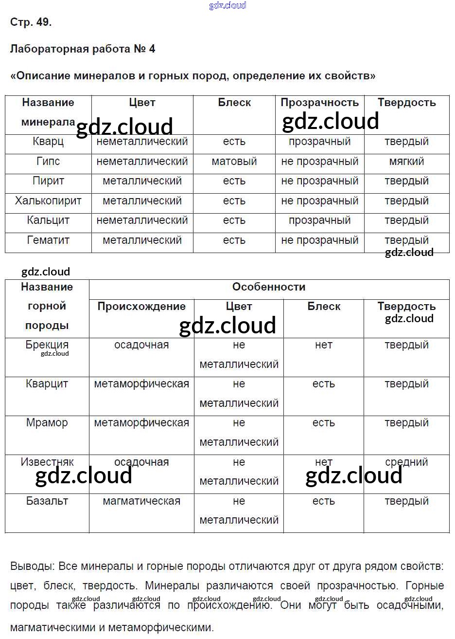 Ответ на задание стр.49 Рабочая тетрадь Естествознание за 5 (пятый) класс Пакулова, Иванова 2014 ФГОС онлайн и без номера телефона.