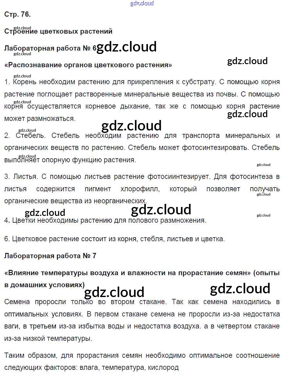 Ответ на задание стр.76 Рабочая тетрадь Естествознание за 5 (пятый) класс Пакулова, Иванова 2014 ФГОС онлайн и без номера телефона.