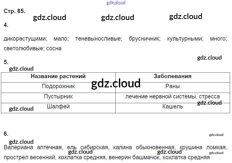 Ответ на задание стр.85 Рабочая тетрадь Естествознание за 5 (пятый) класс Пакулова, Иванова 2014 ФГОС онлайн и без номера телефона.