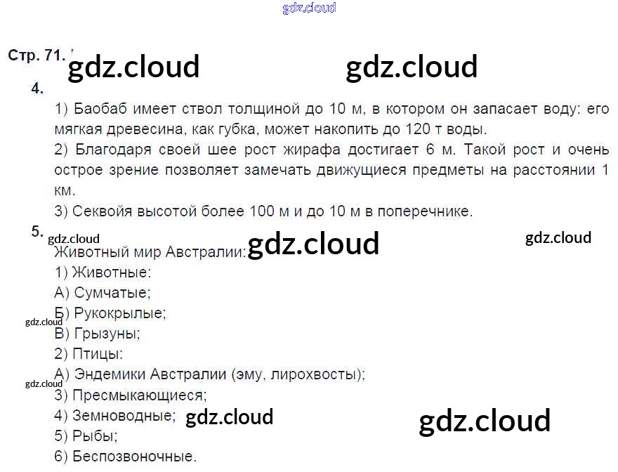 Ответ на задание 71 Рабочая тетрадь Естествознание за 5 (пятый) класс Плешаков, Сонин Вертикаль 2015