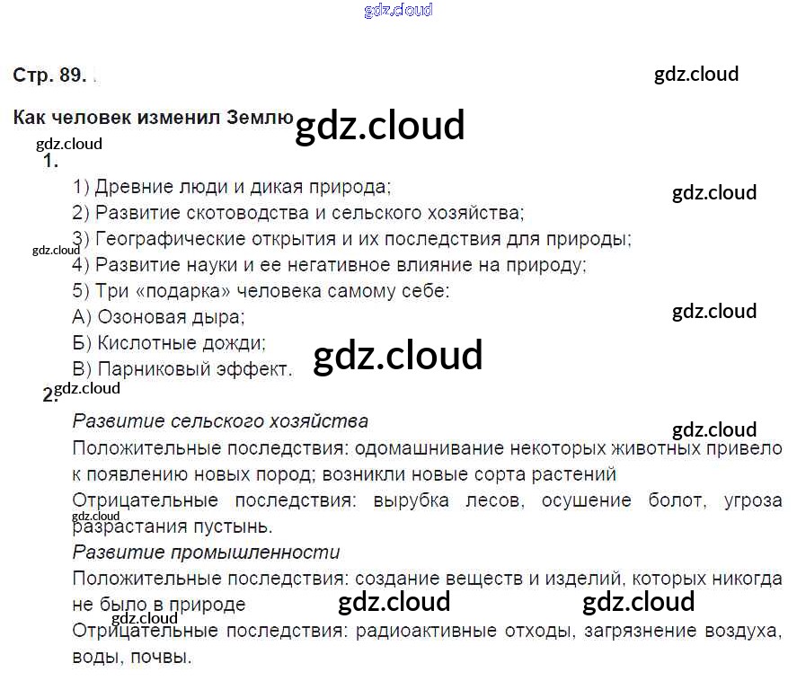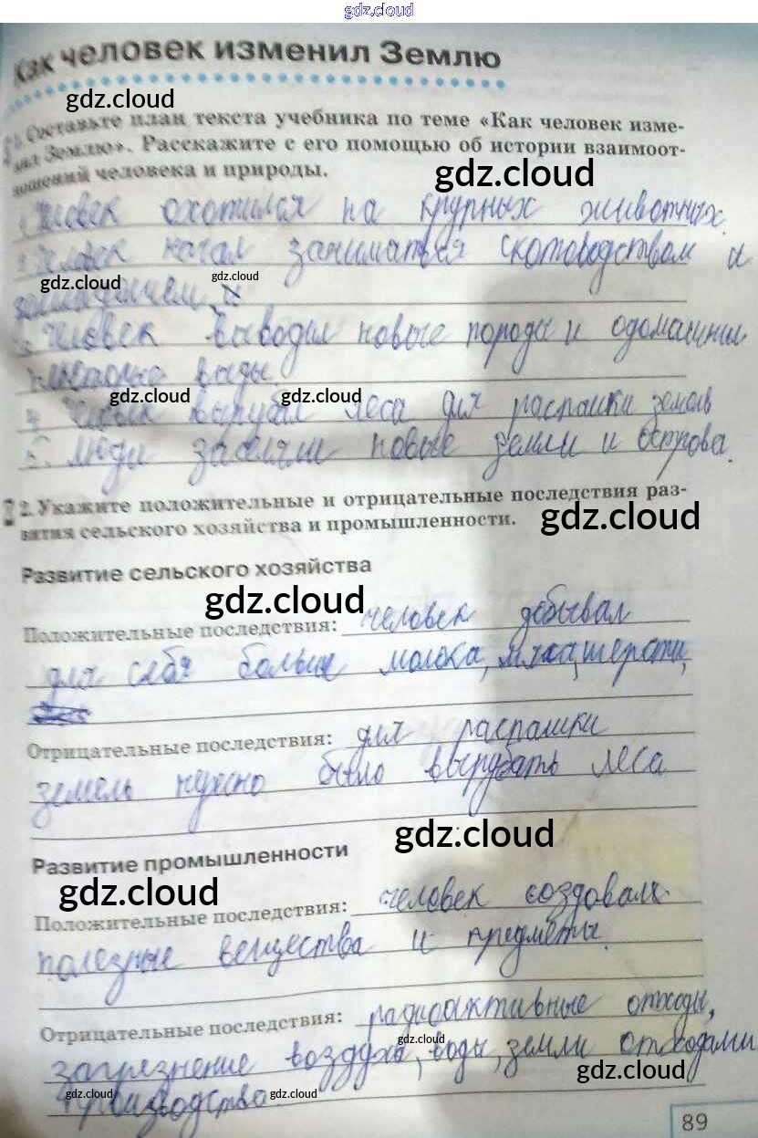 Ответ на задание 89 Рабочая тетрадь Естествознание за 5 (пятый) класс Плешаков, Сонин Вертикаль 2015