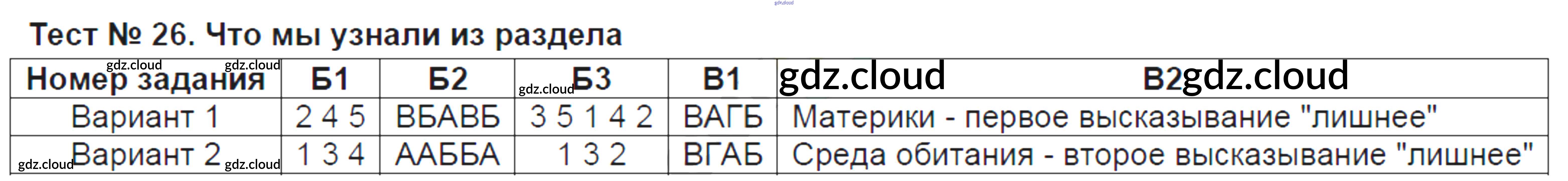 Ответ на задание Тест №26. Что мы узнали из раздела Тесты Естествознание за 5 (пятый) класс Воронина УМК 2015 ФГОС онлайн и без номера телефона.