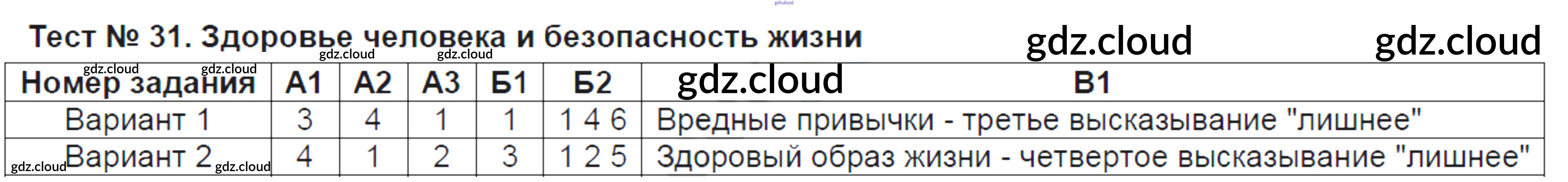 Тест №31. Здоровье человека и безопасность жизни
