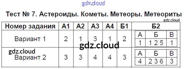 Ответ на задание Тест №7. Астероиды. Кометы. Метеоры. Метеориты Тесты Естествознание за 5 (пятый) класс Воронина УМК 2015 ФГОС онлайн и без номера телефона.