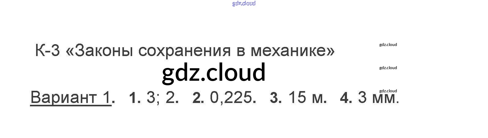 КР Ответы к теме : Законы сохранения в механике по Физике 10 класс Самостоятельные и контрольные работы Ерюткин Базовый и углубленный уровень Просвещение