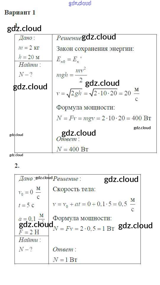 Ответ на задание 1 Самостоятельные и контрольные работы Физика за 10 (десятый) класс Ерюткин, Ерюткина Базовый и углубленный уровень 2018