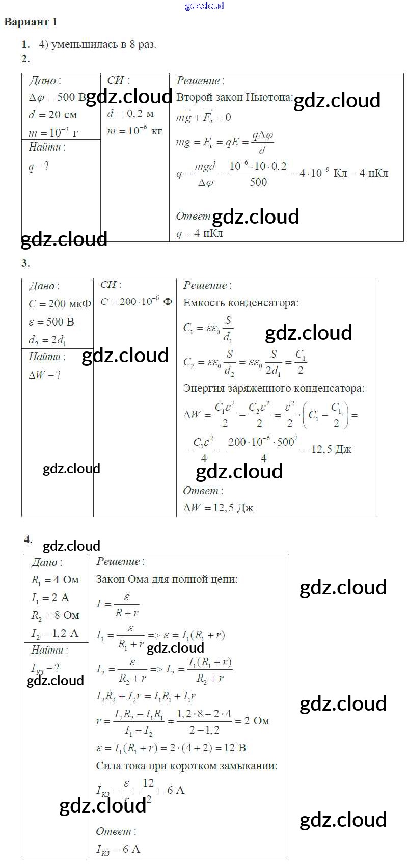 Ответ на задание 1 Самостоятельные и контрольные работы Физика за 10 (десятый) класс Ерюткин, Ерюткина Базовый и углубленный уровень 2018