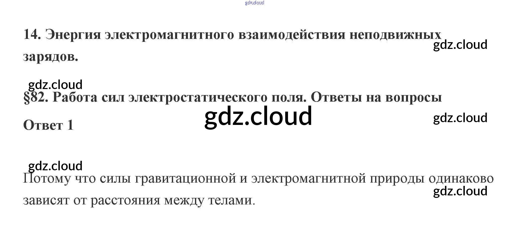82. Работа сил электростатического поля 14. Энергия электромагнитного взаимодействия неподвижных зарядов по Физике 10 класс Учебник Касьянов Дрофа