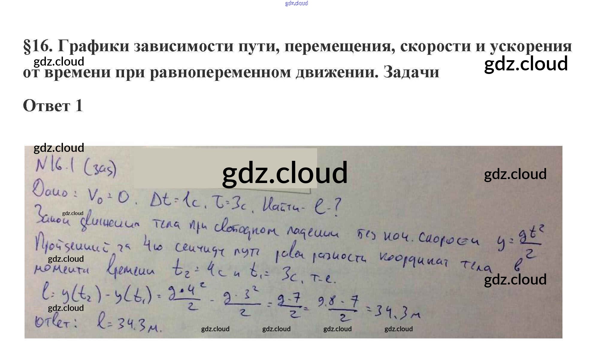 16. Графики зависимости пути, перемещения 2. Кинематика материальной точки по Физике 10 класс Учебник Касьянов Дрофа