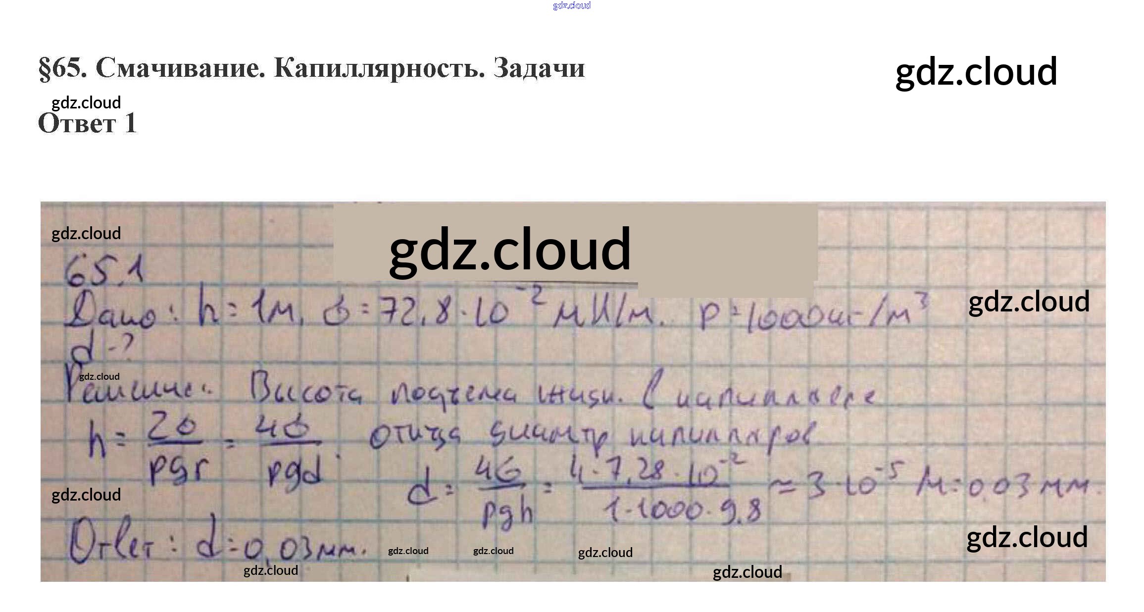 65. Смачивание. Капиллярность 10. Жидкость и пар по Физике 10 класс Учебник Касьянов Дрофа