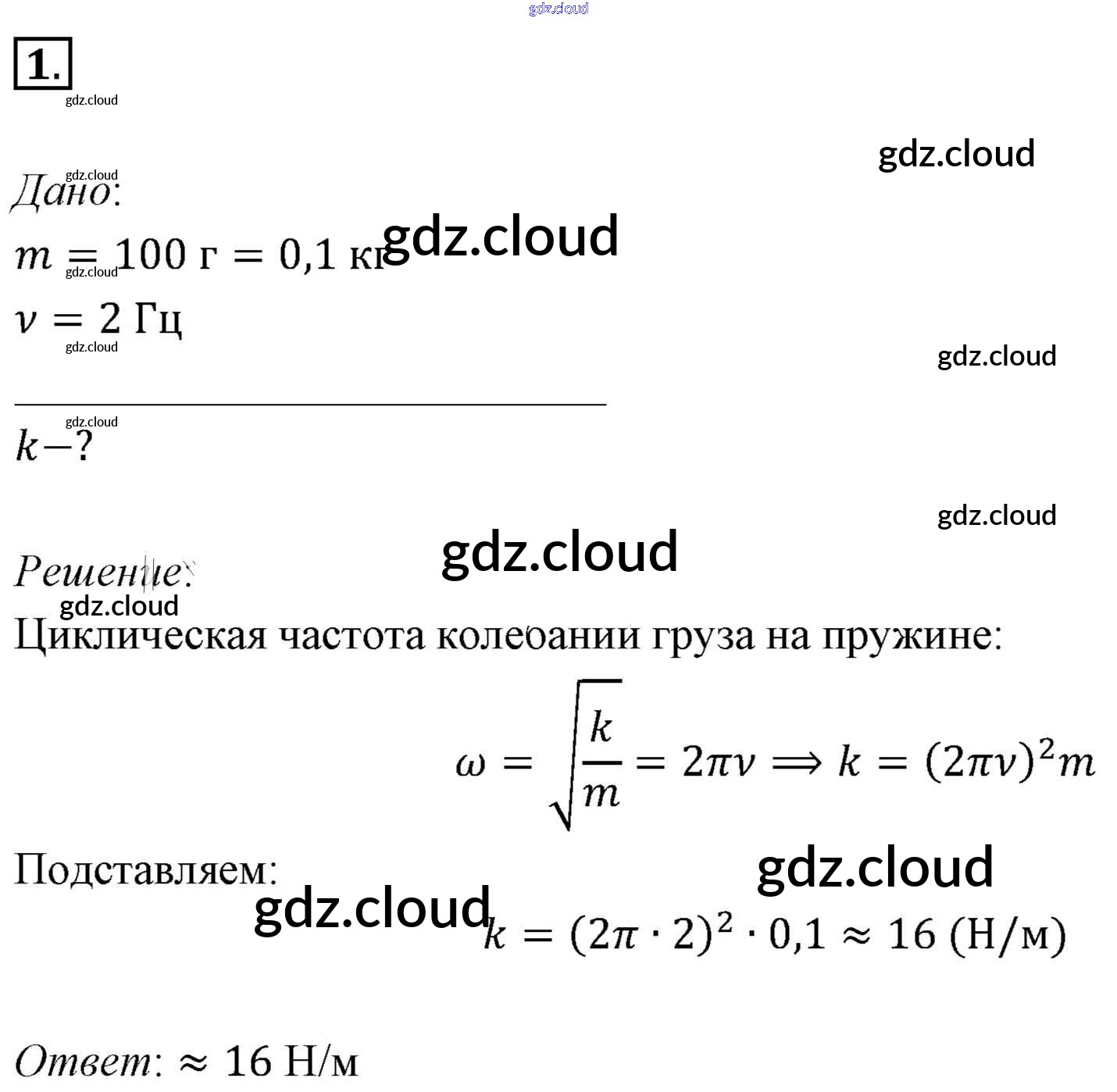 Задачи для самостоятельного решения Ответы к §15. Примеры решения задач по теме «Гармонические колебания» по Физике 11 класс Учебник Мякишев  Базовый уровень  Просвещение