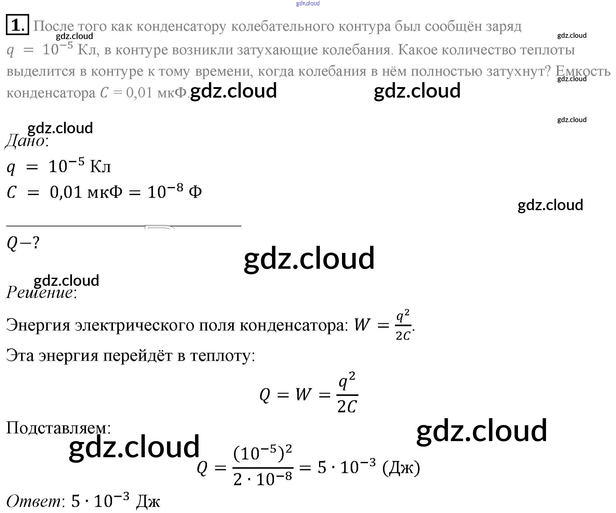 Задачи для самостоятельного решения Ответы к §20. Примеры решения задач по теме «Гармонические электромагнитные колебания» по Физике 11 класс Учебник Мякишев  Базовый уровень  Просвещение