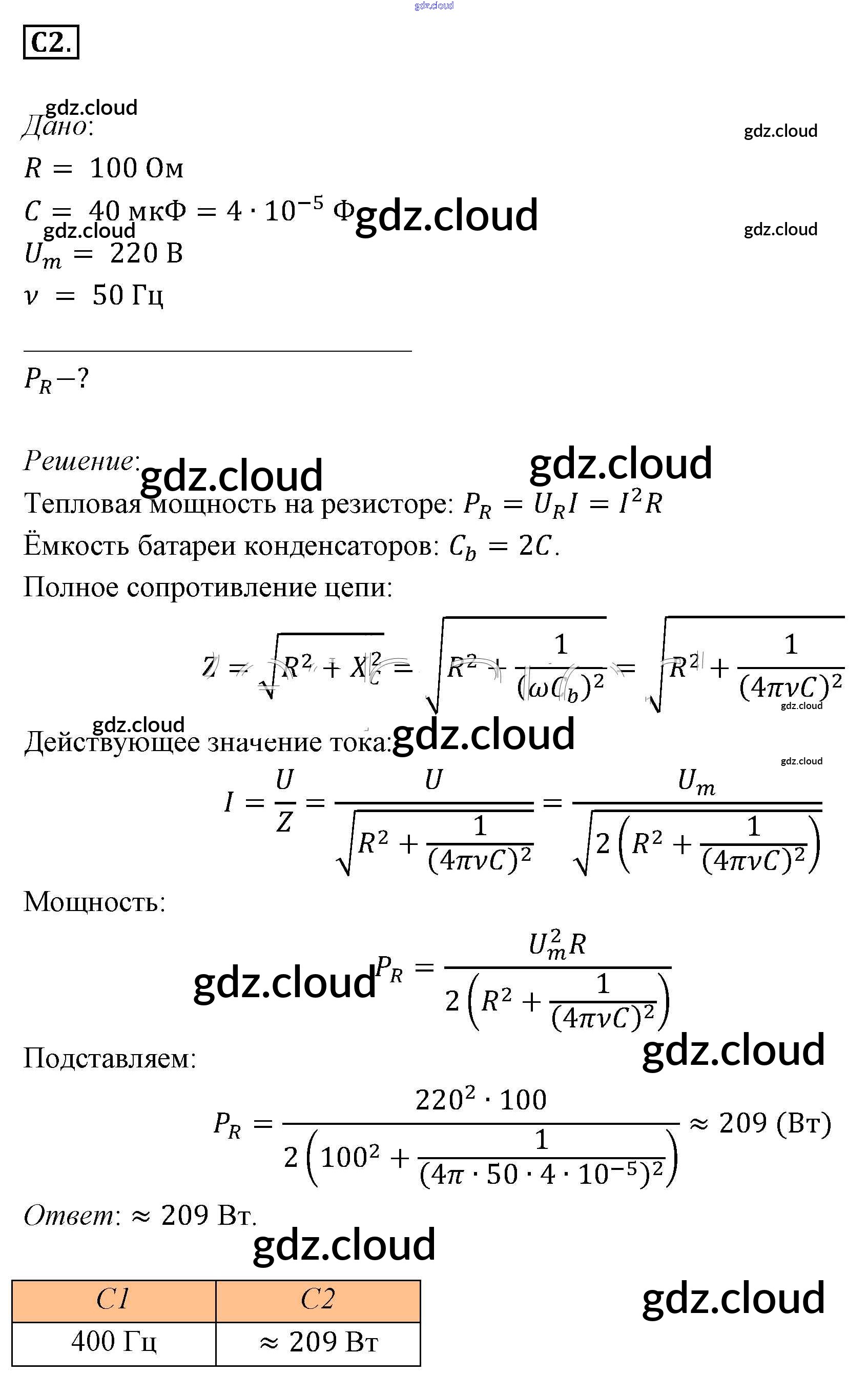 Задания ЕГЭ Ответы к §24. Примеры решения задач по теме «Переменный электрический ток» по Физике 11 класс Учебник Мякишев  Базовый уровень  Просвещение