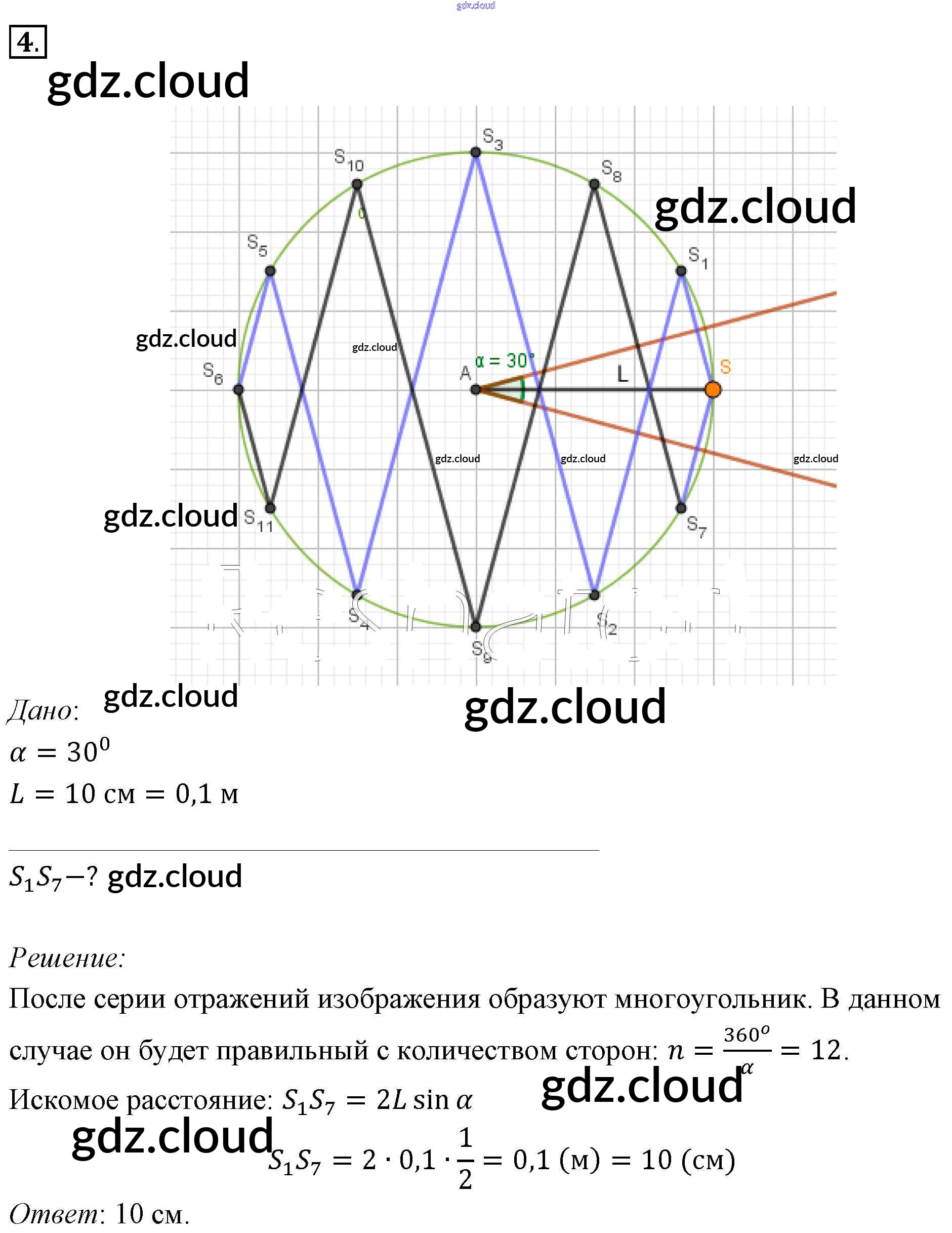 Задачи для самостоятельного решения Ответы к §46. Примеры решения задач по теме «Закон прямолинейного распространения света. Законы отражения света» по Физике 11 класс Учебник Мякишев  Базовый уровень  Просвещение