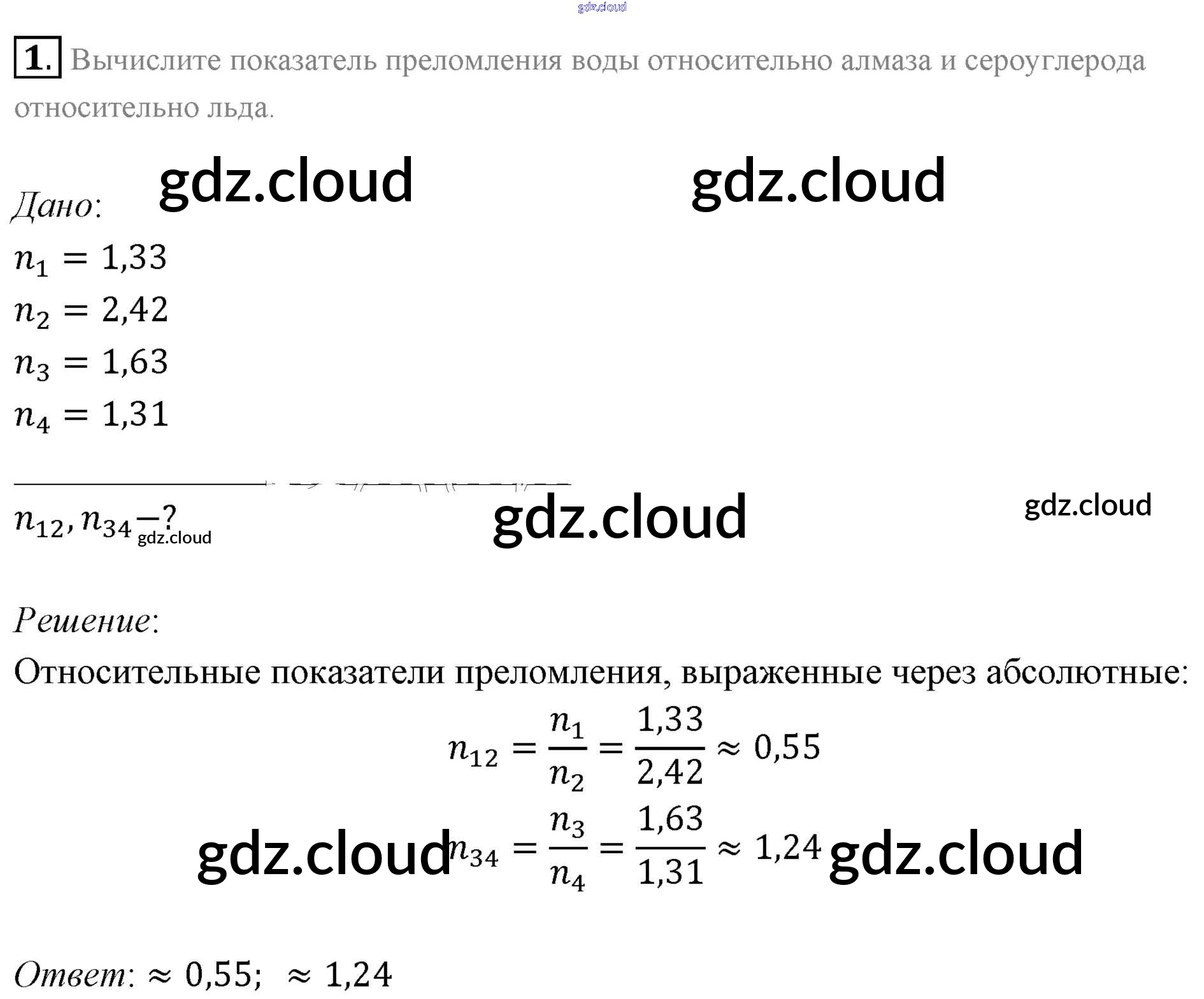 Задачи для самостоятельного решения Ответы к §49. Примеры решения задач по теме «Закон преломления света. Полное отражение света» по Физике 11 класс Учебник Мякишев  Базовый уровень  Просвещение