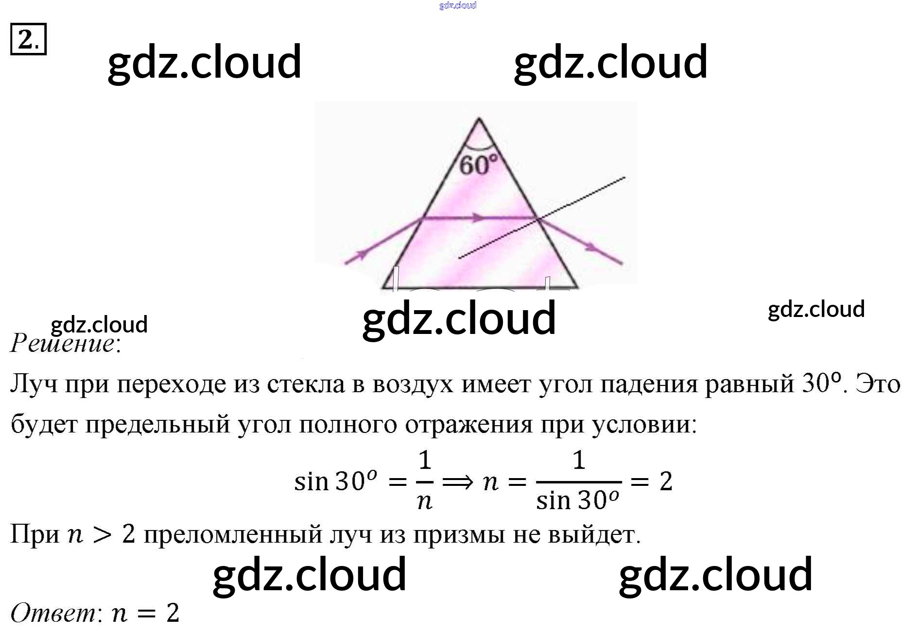 Задачи для самостоятельного решения Ответы к §49. Примеры решения задач по теме «Закон преломления света. Полное отражение света» по Физике 11 класс Учебник Мякишев  Базовый уровень  Просвещение