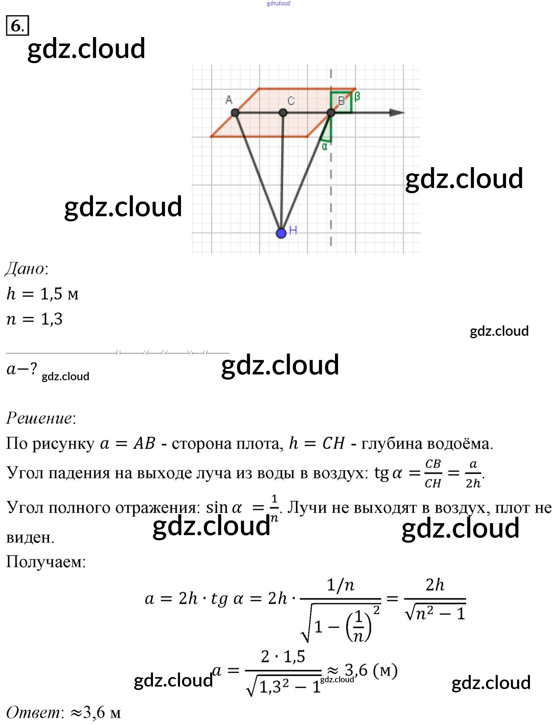 Задачи для самостоятельного решения Ответы к §49. Примеры решения задач по теме «Закон преломления света. Полное отражение света» по Физике 11 класс Учебник Мякишев  Базовый уровень  Просвещение