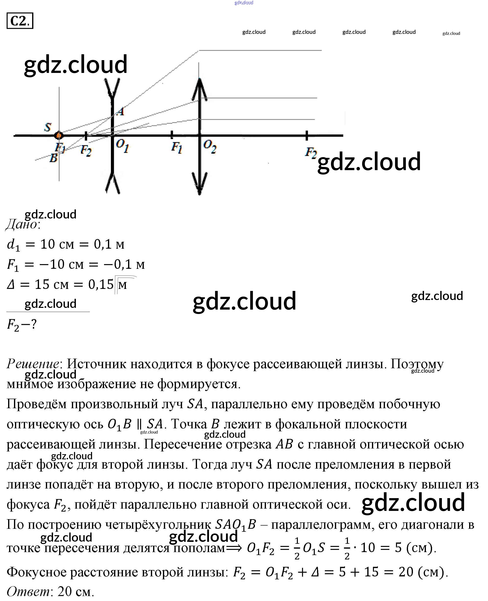Задания ЕГЭ Ответы к §52. Примеры решения задач по теме «Линзы» по Физике 11 класс Учебник Мякишев  Базовый уровень  Просвещение