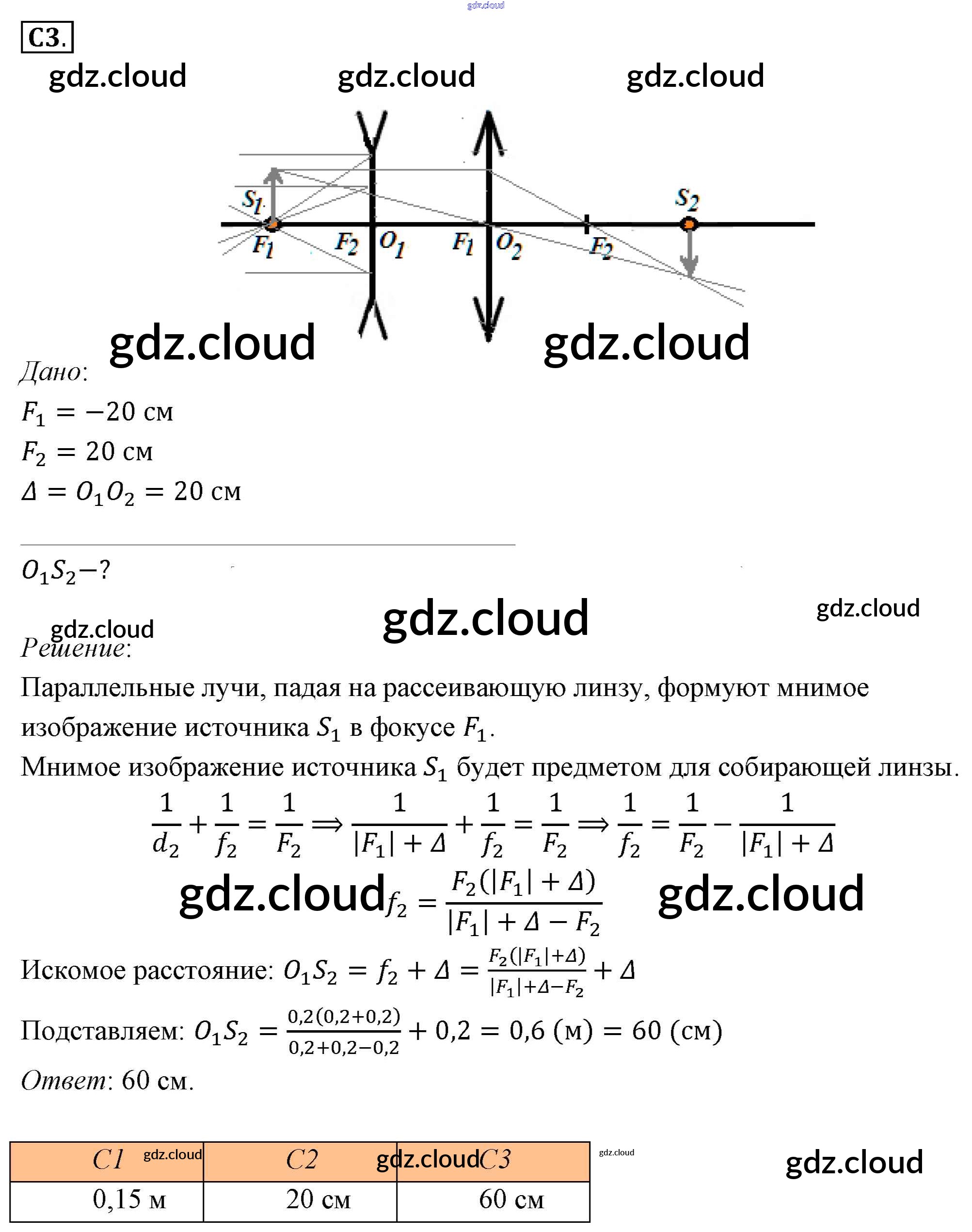 Задания ЕГЭ Ответы к §52. Примеры решения задач по теме «Линзы» по Физике 11 класс Учебник Мякишев  Базовый уровень  Просвещение