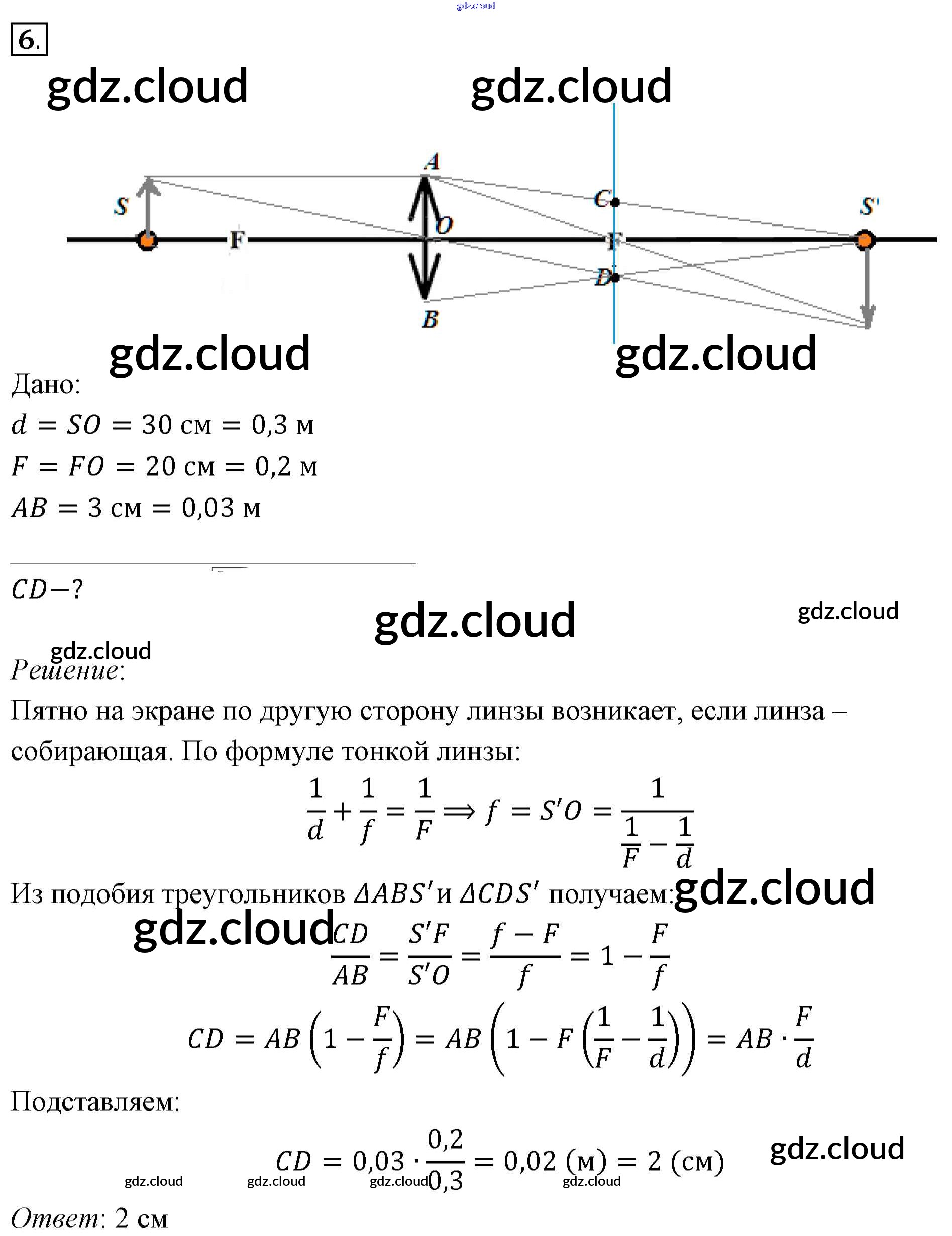 Задачи для самостоятельного решения Ответы к §52. Примеры решения задач по теме «Линзы» по Физике 11 класс Учебник Мякишев  Базовый уровень  Просвещение
