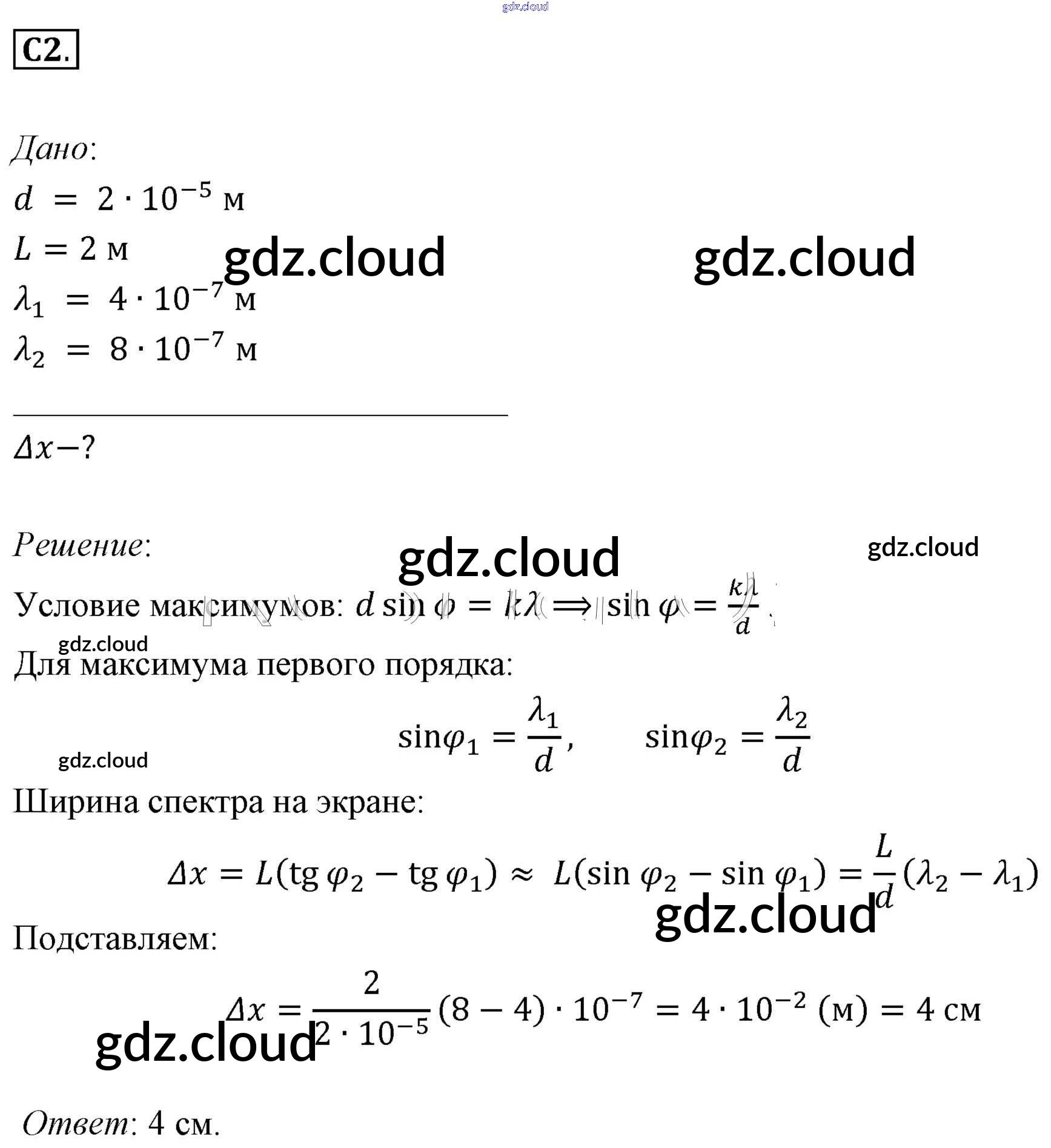 Задания ЕГЭ Ответы к §59. Примеры решения задач по теме «Интерференция и дифракция света» по Физике 11 класс Учебник Мякишев  Базовый уровень  Просвещение