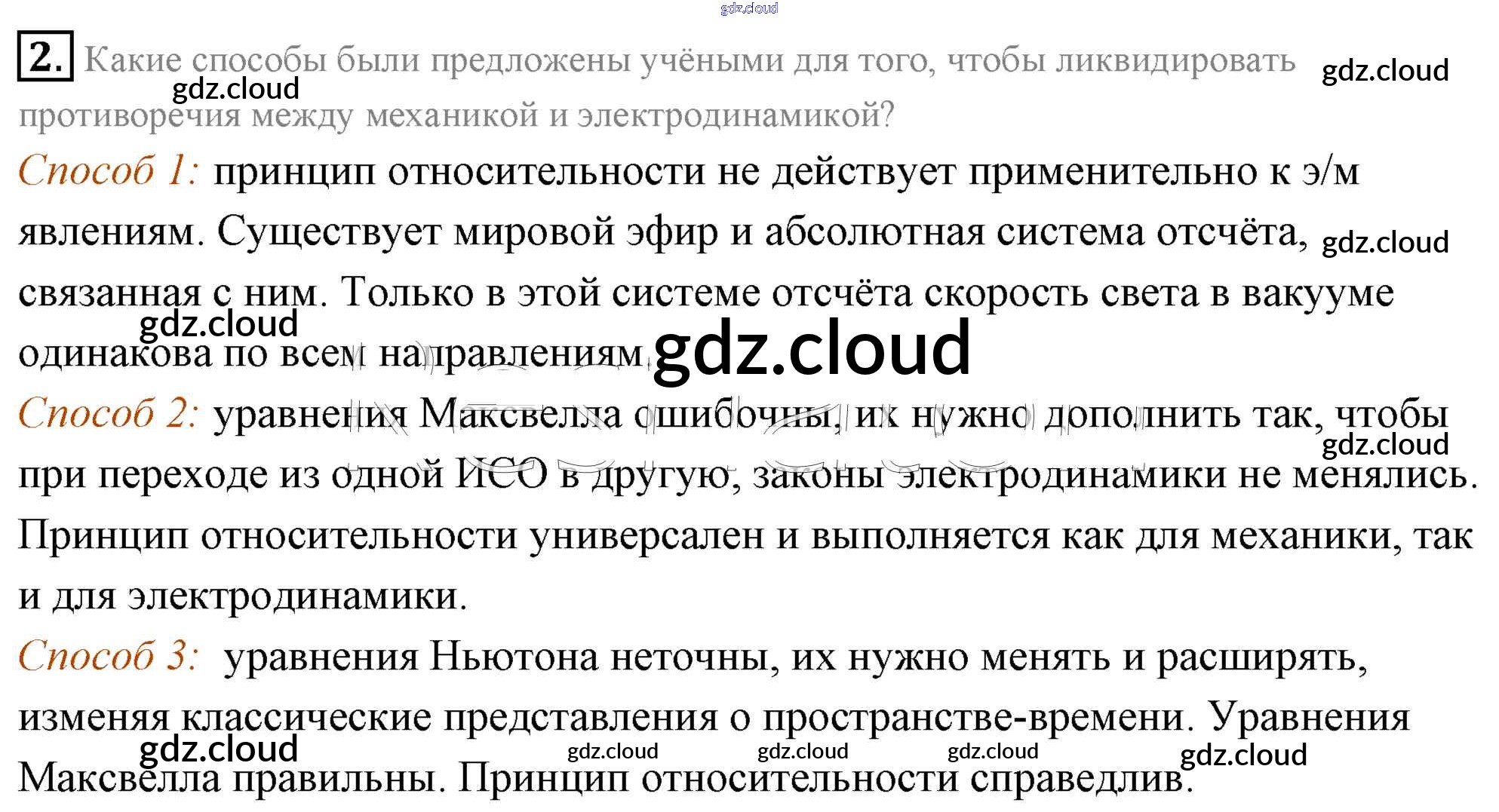Ответ на задание 2 Учебник Физика  за 11 (одиннадцатый) класс Мякишев, Буховцев, Чаругин, Николаева, Парфеньтьева  Базовый уровень 2018