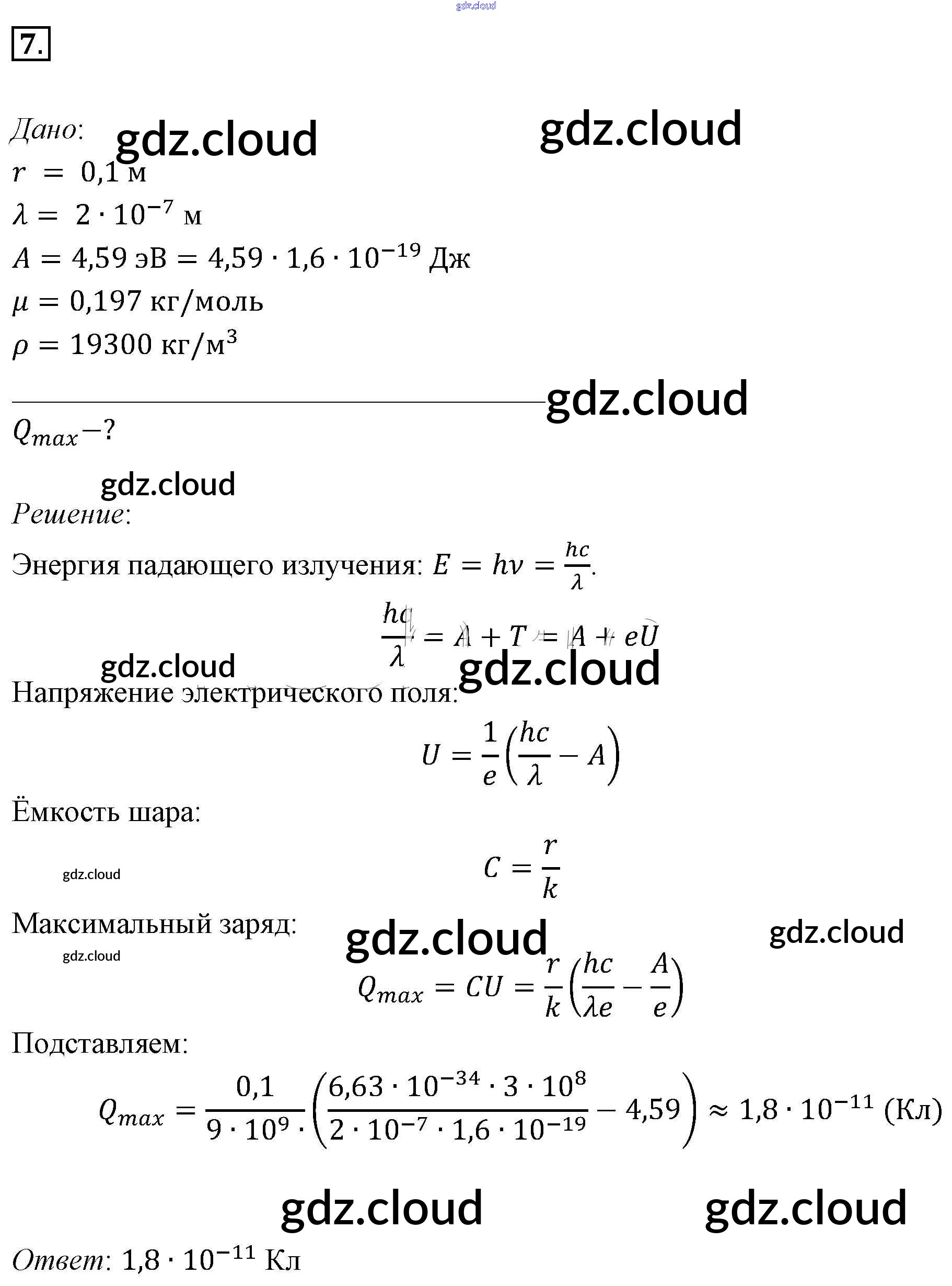 Ответ на задание 7 Учебник Физика  за 11 (одиннадцатый) класс Мякишев, Буховцев, Чаругин, Николаева, Парфеньтьева  Базовый уровень 2018