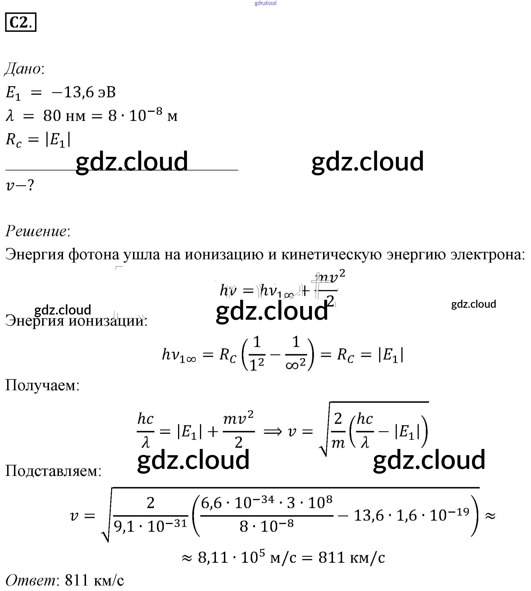 Задания ЕГЭ Ответы к §77. Примеры решения задач по теме «Атомная физика» по Физике 11 класс Учебник Мякишев  Базовый уровень  Просвещение