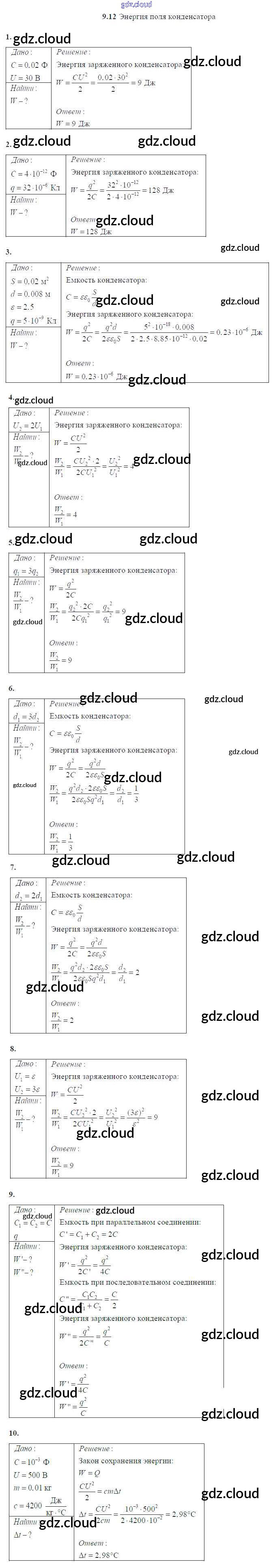 Ответы к параграфам 9 по Физике 10, 11 класс Сборник задач и упражнений Громцева УМК Экзамен