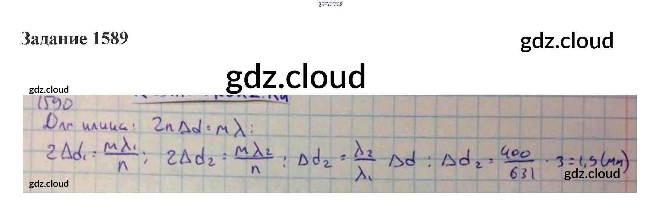 Ответ на задание 1589 Сборник задач Физика за 10, 11 (десятый, одиннадцатый) класс Степанова 2015