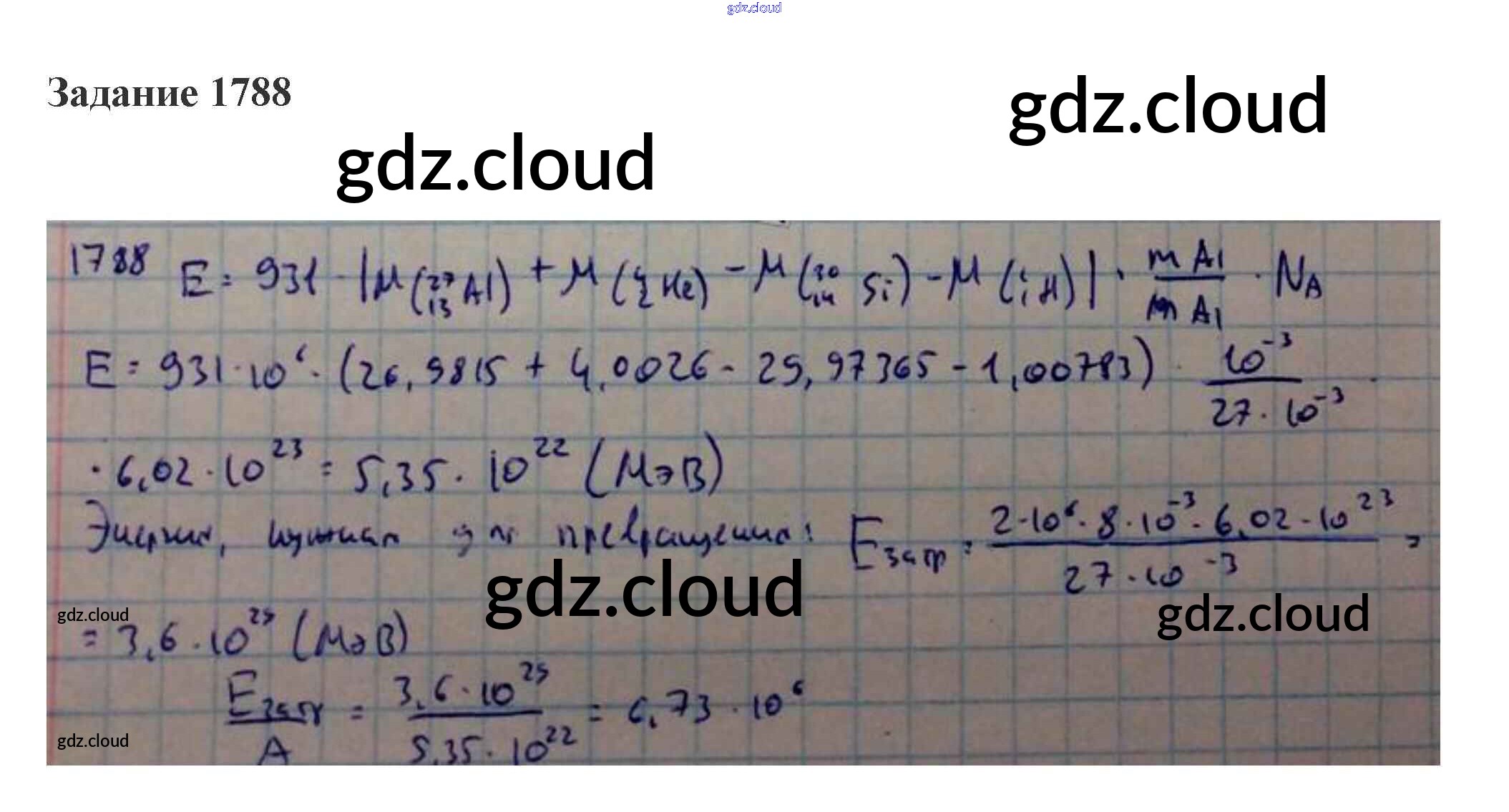 Ответ на задание 1788 Сборник задач Физика за 10, 11 (десятый, одиннадцатый) класс Степанова 2015