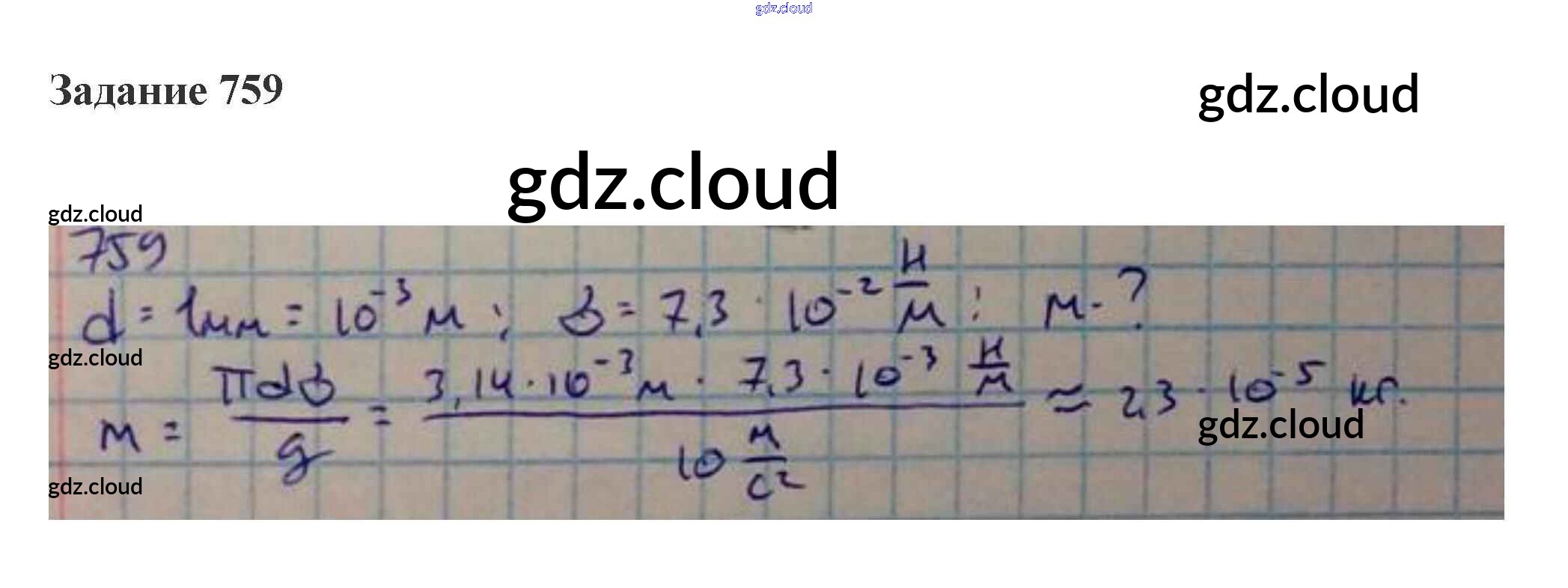 Ответ на задание 759 Сборник задач Физика за 10, 11 (десятый, одиннадцатый) класс Степанова 2015