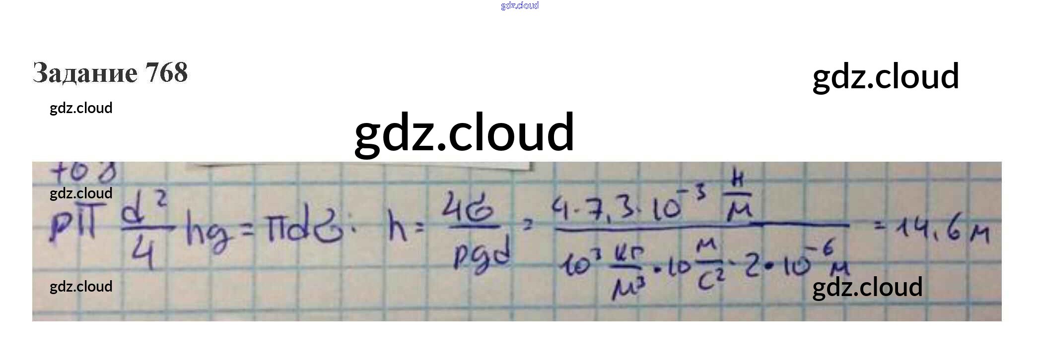 Ответ на задание 768 Сборник задач Физика за 10, 11 (десятый, одиннадцатый) класс Степанова 2015