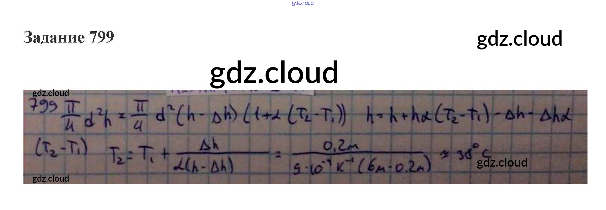 Ответ на задание 799 Сборник задач Физика за 10, 11 (десятый, одиннадцатый) класс Степанова 2015