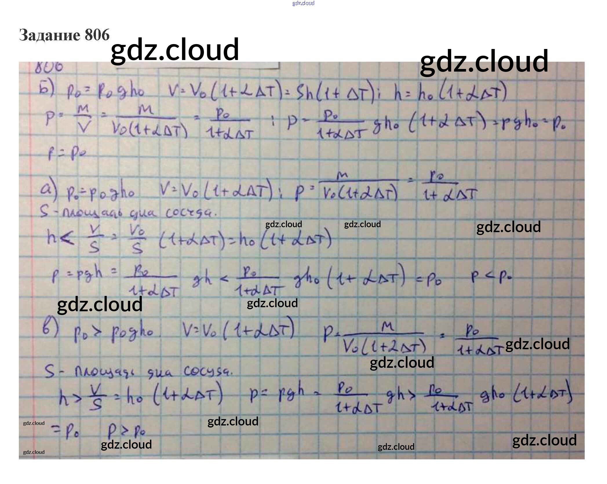 Ответ на задание 806 Сборник задач Физика за 10, 11 (десятый, одиннадцатый) класс Степанова 2015