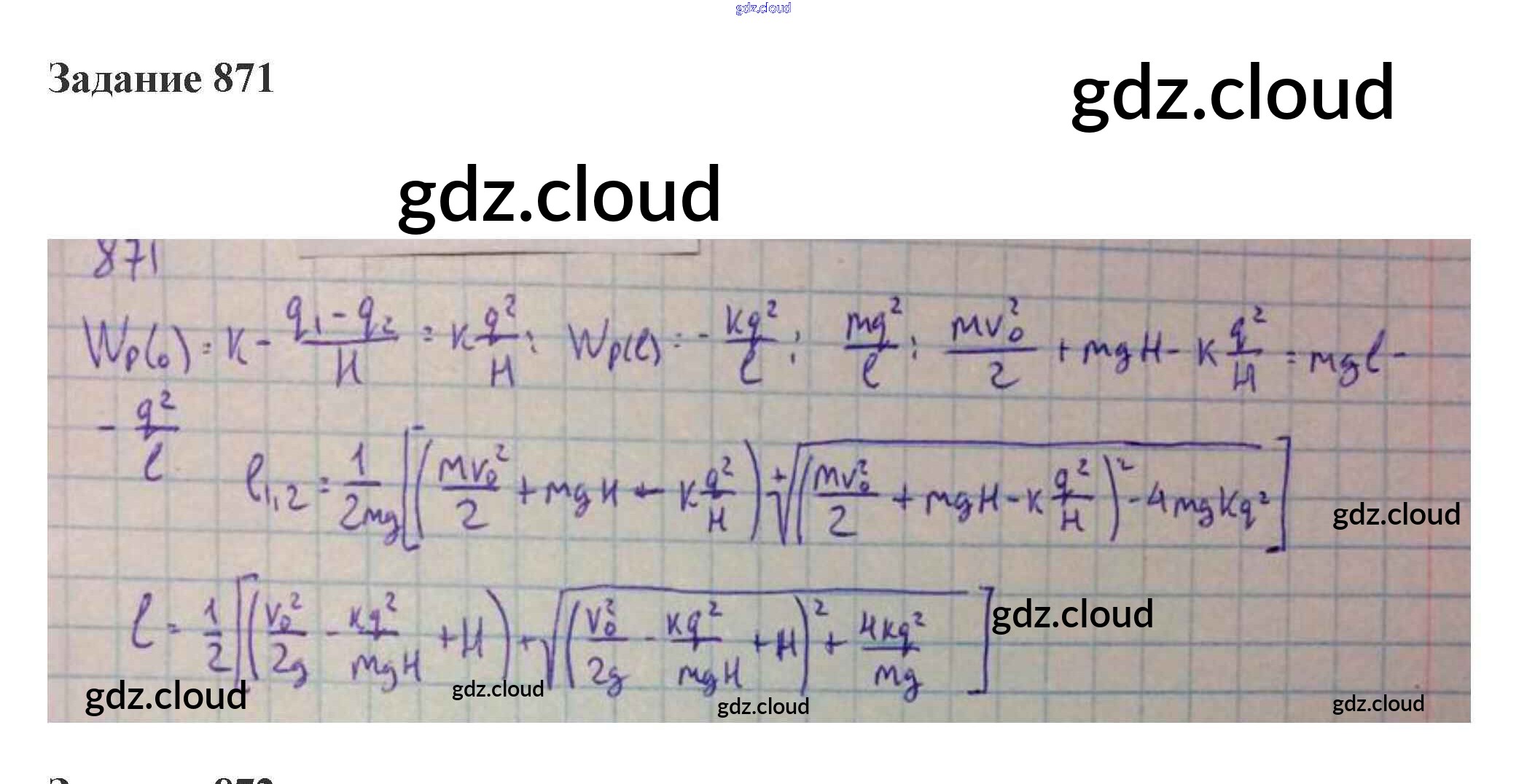 Ответ на задание 871 Сборник задач Физика за 10, 11 (десятый, одиннадцатый) класс Степанова 2015
