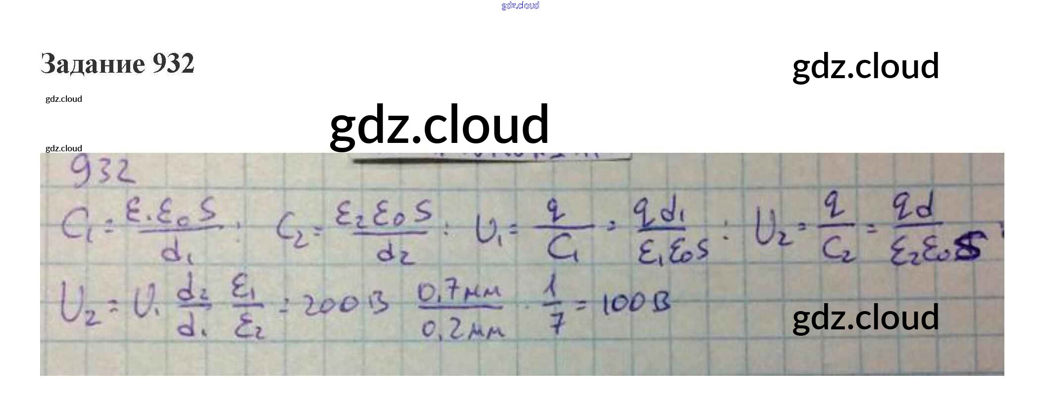 Ответ на задание 932 Сборник задач Физика за 10, 11 (десятый, одиннадцатый) класс Степанова 2015