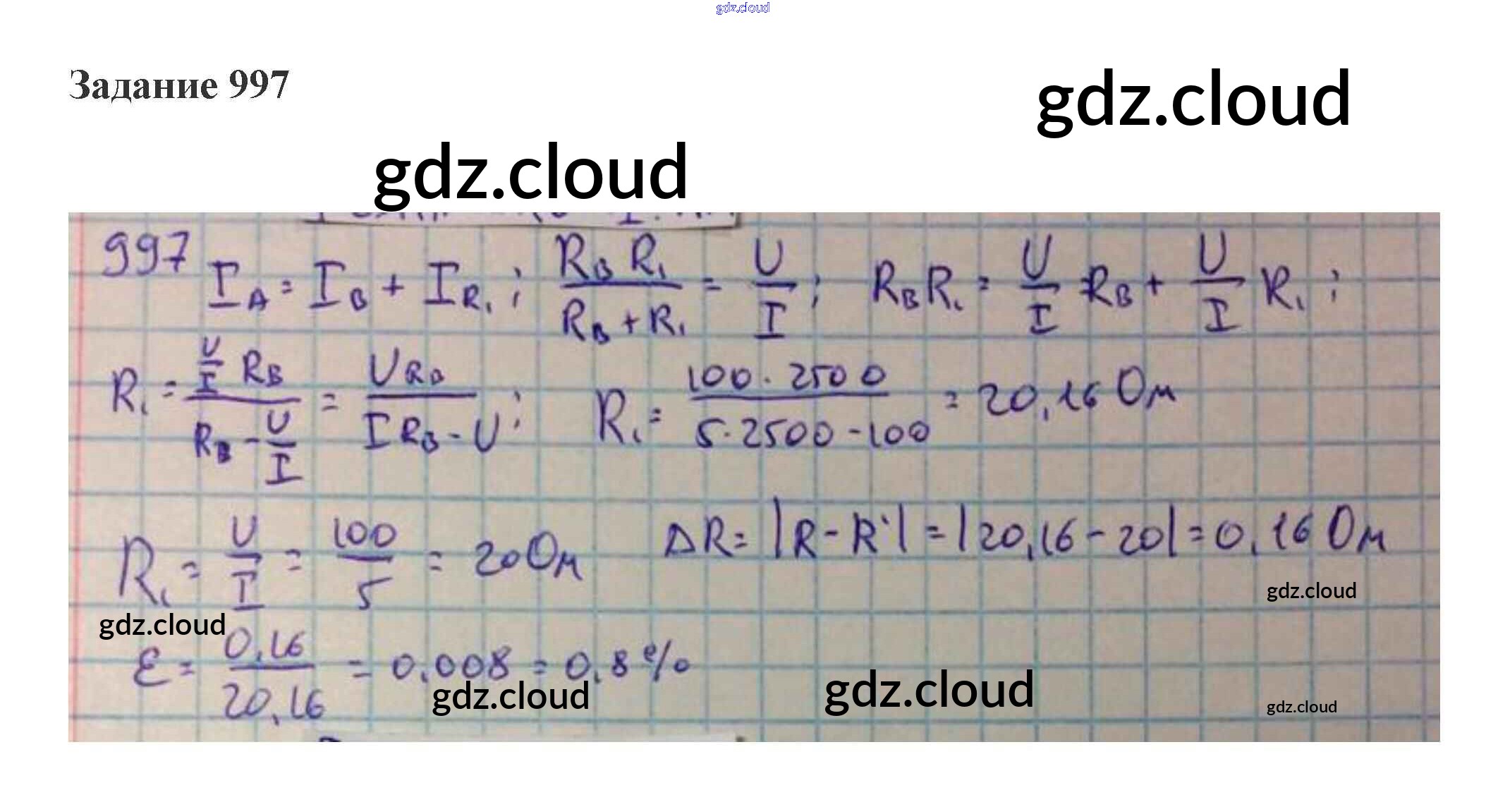Ответ на задание 997 Сборник задач Физика за 10, 11 (десятый, одиннадцатый) класс Степанова 2015