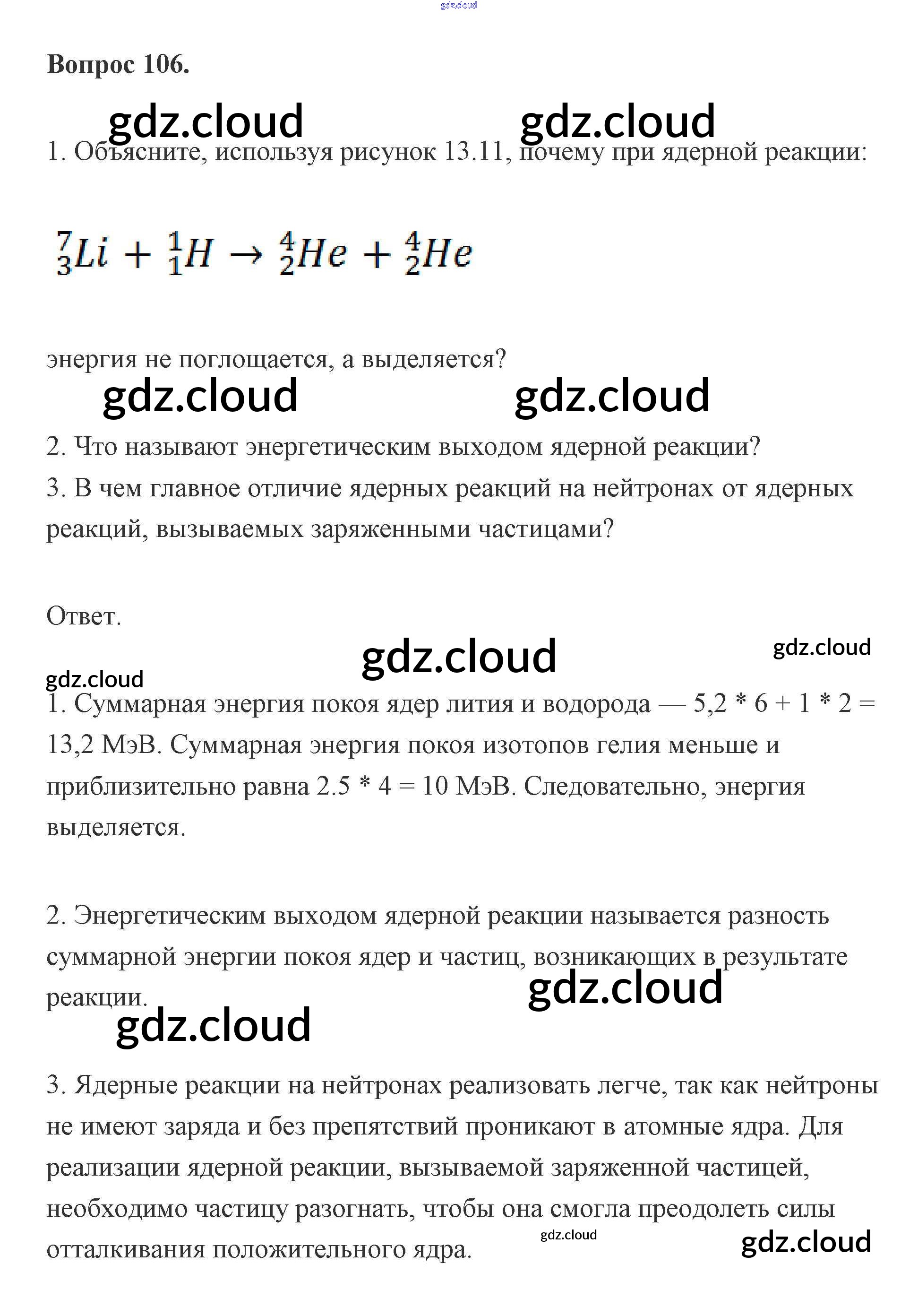 Ответ на задание 106 Учебник Физика за 11 (одиннадцатый) класс Мякишев, Буховцев, Чаругин, Николаева, Парфеньтьева Базовый и углубленный уровень 2019