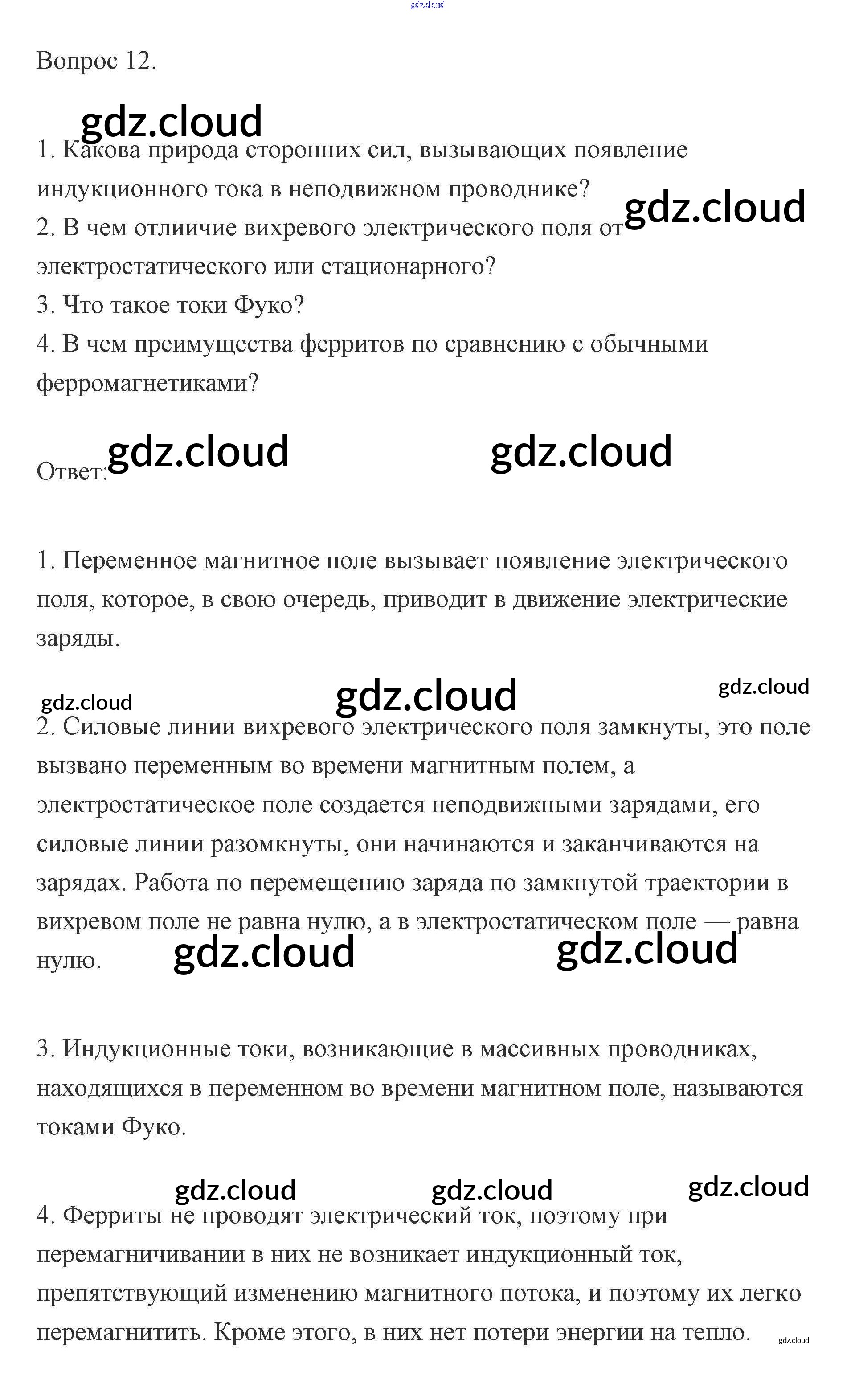 Ответы к вопросам по Физике 11 класс Учебник Мякишев Базовый и углубленный уровень Просвещение