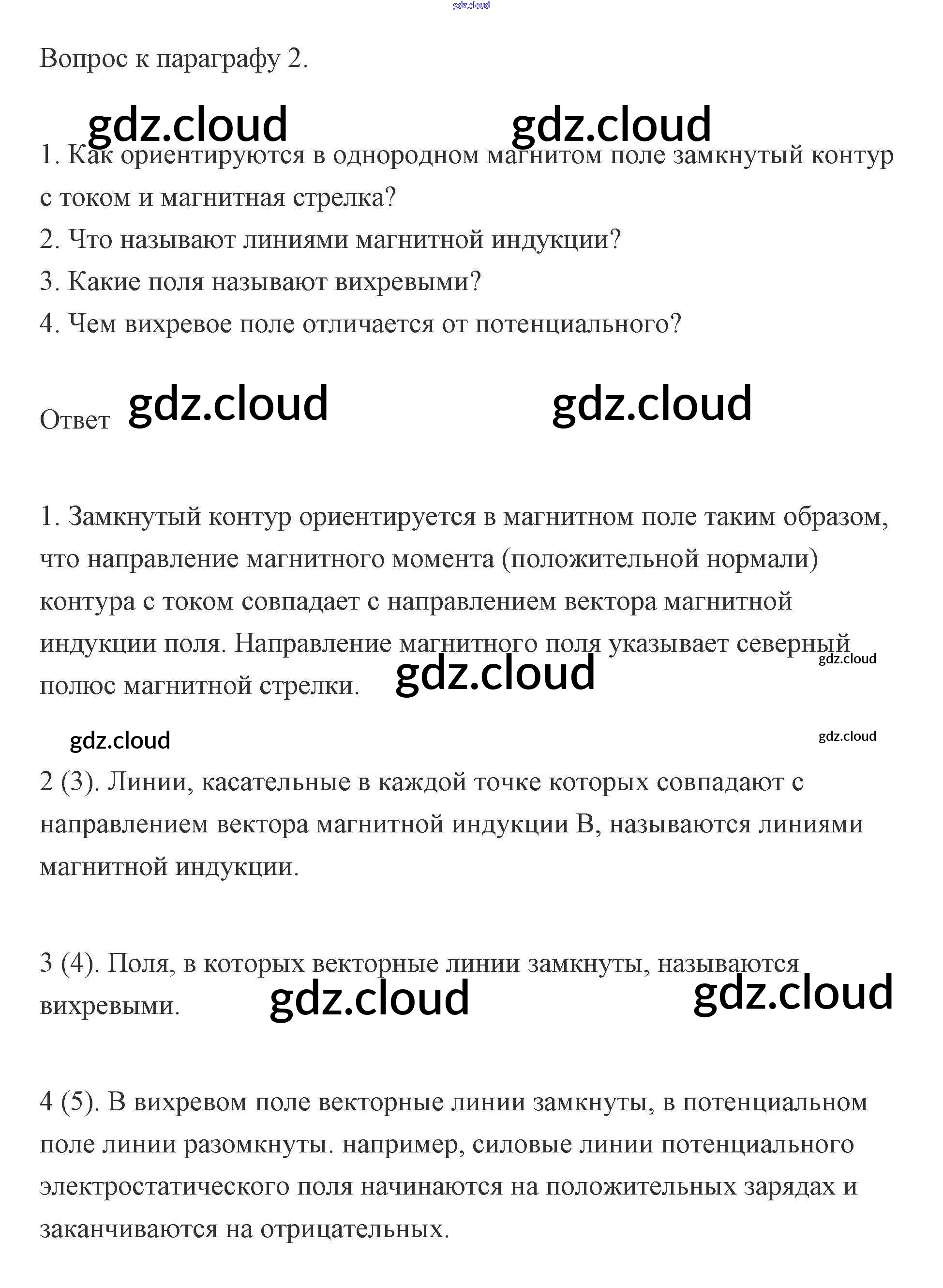 Ответы к вопросам по Физике 11 класс Учебник Мякишев Базовый и углубленный уровень Просвещение