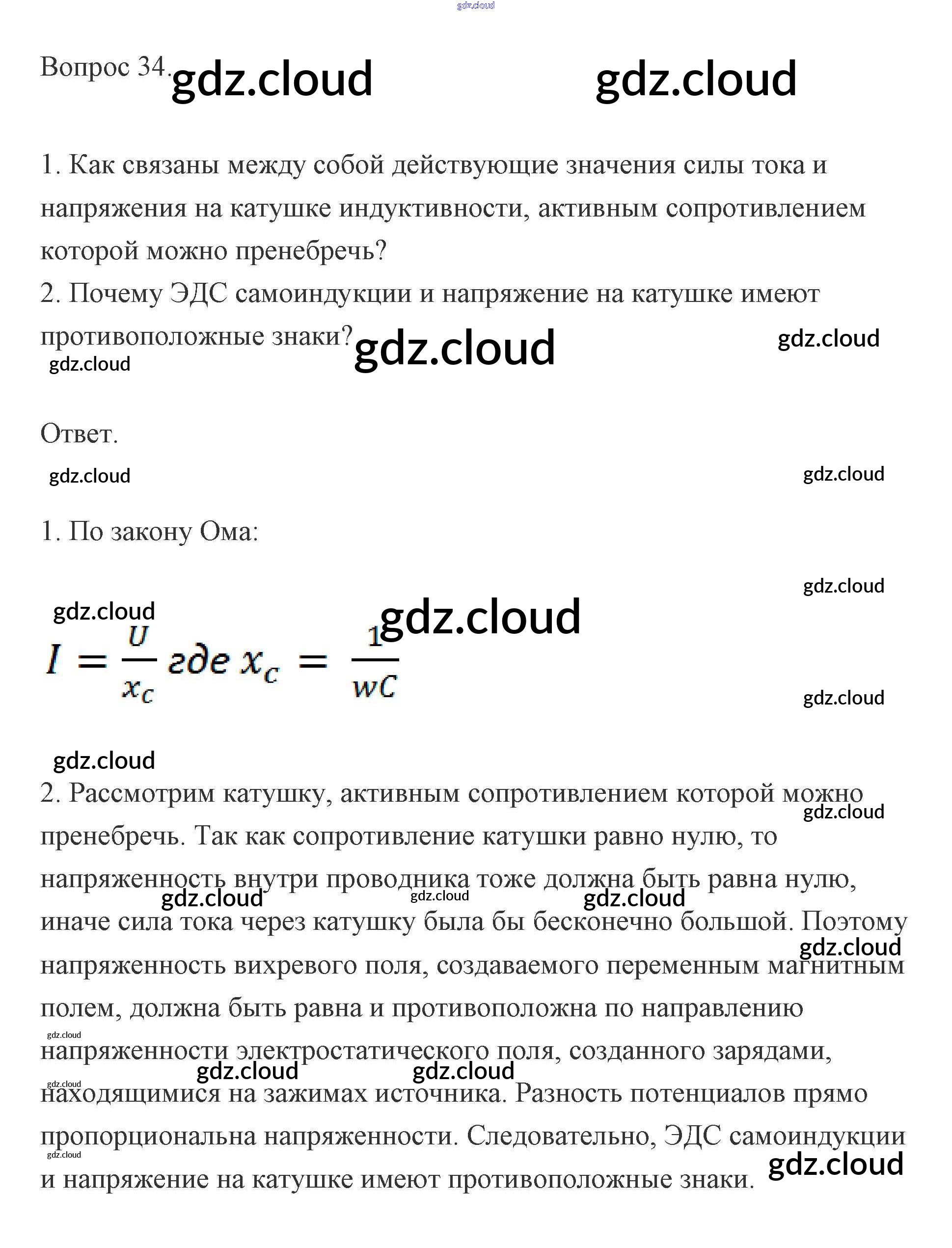 Ответ на задание 34 Учебник Физика за 11 (одиннадцатый) класс Мякишев, Буховцев, Чаругин, Николаева, Парфеньтьева Базовый и углубленный уровень 2019