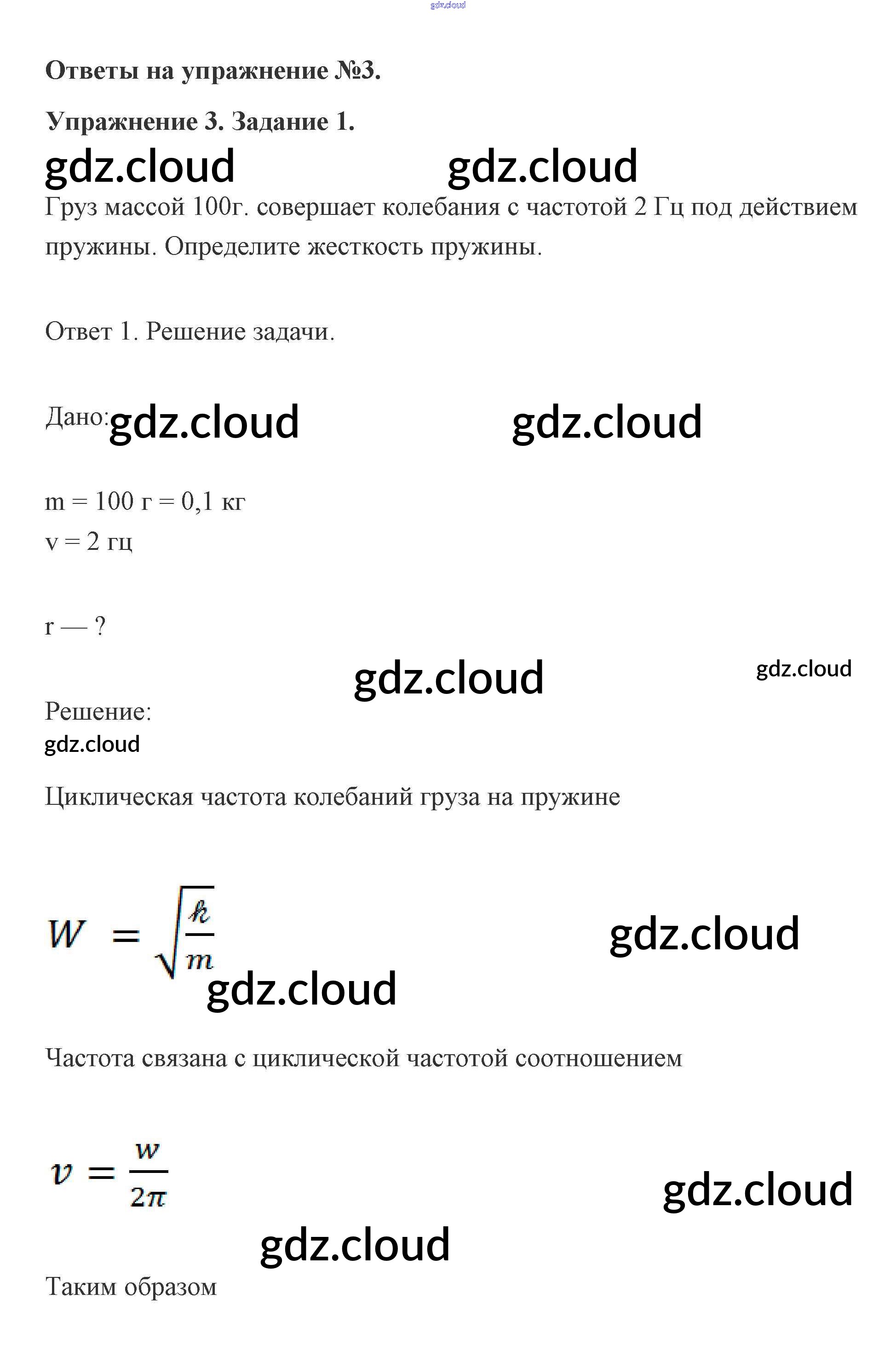 Глава 3. Упражнение 3 (Задания) Ответы к упражнениям по Физике 11 класс Учебник Мякишев Базовый и углубленный уровень Просвещение