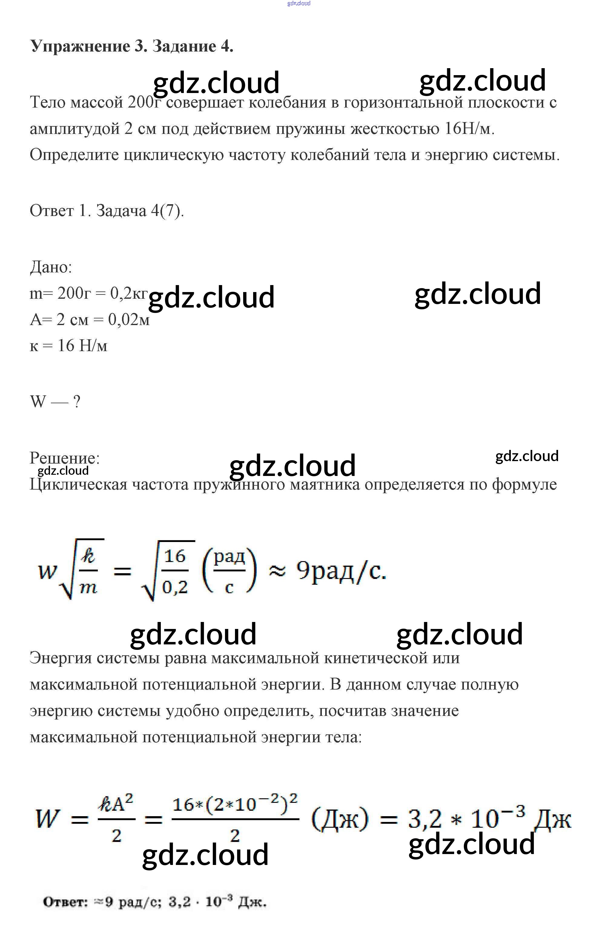 Глава 3. Упражнение 3 (Задания) Ответы к упражнениям по Физике 11 класс Учебник Мякишев Базовый и углубленный уровень Просвещение