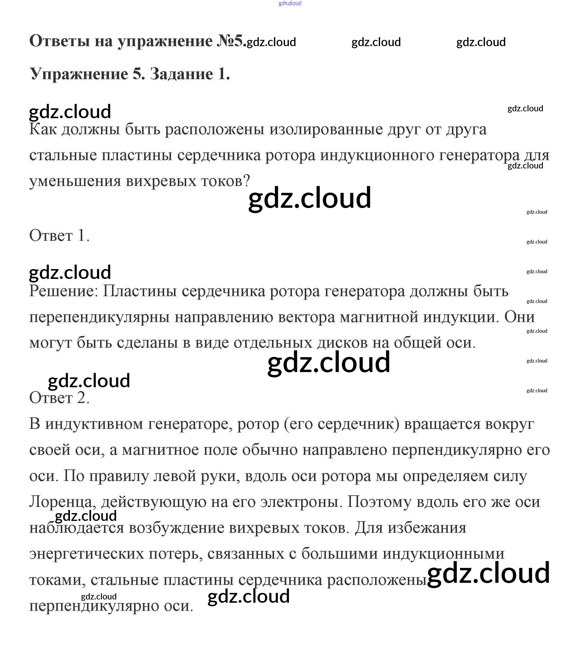 Глава 5. Упражнение 5 (Задания) Ответы к упражнениям по Физике 11 класс Учебник Мякишев Базовый и углубленный уровень Просвещение